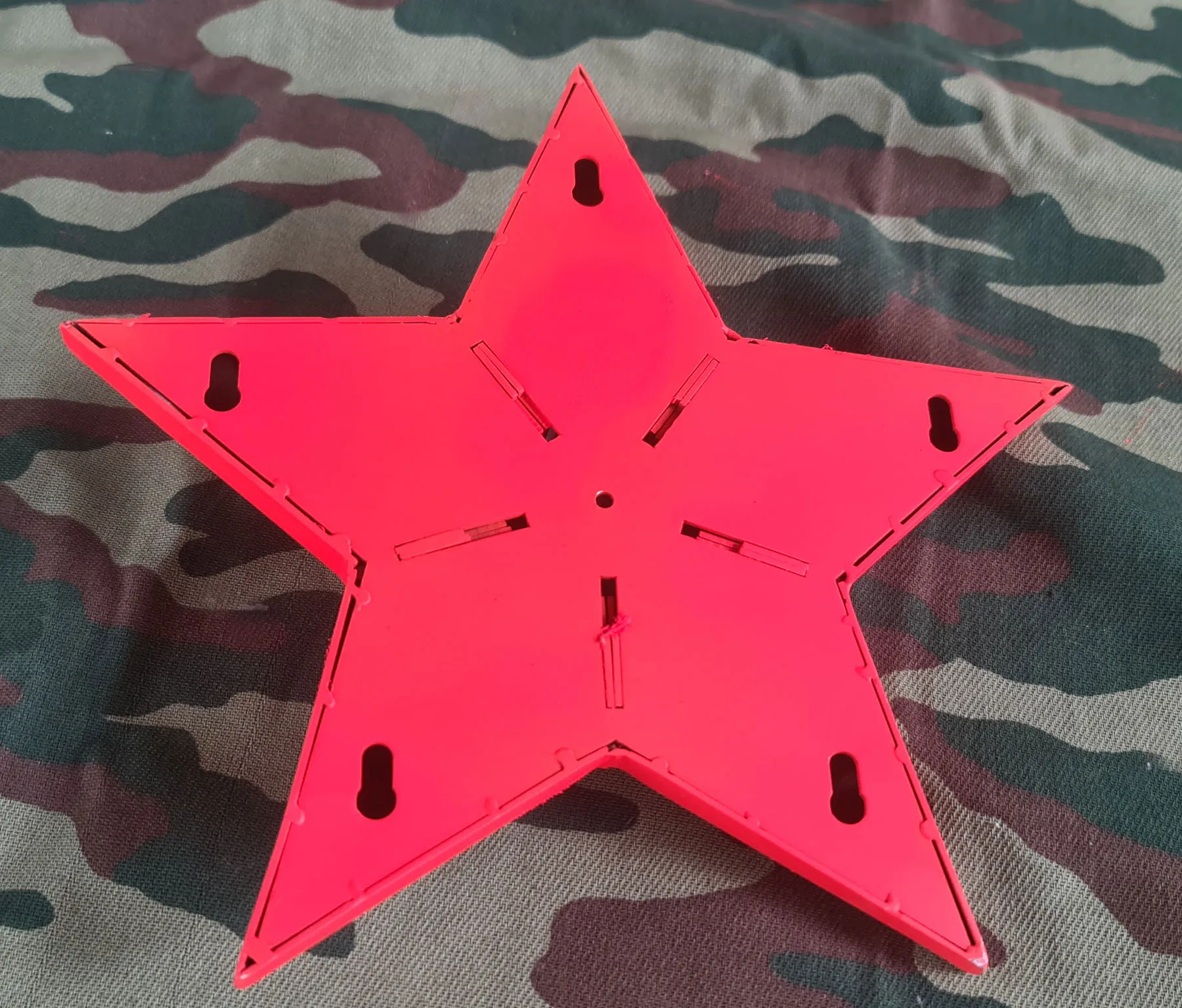 Предлагается к поставке красная звезда на памятник. Звезда изготавливается из нержавеющей стали с последующим окрашиванием изделия в красный цвет. С тыльной стороны звезды имеются отверстия для крепежа изделия на тело обелиска. Толщина стенок изделия от 1 до 3 мм. Диаметр звезды согласовывается с заказчиком, он может быть разным, от маленького 100 – 150 мм., до огромного 1500 мм. Звезда на памятник рассчитана для эксплуатации в любых климатических условиях. Изготавливается звезда на заказ в любом оттенке красного цвета.